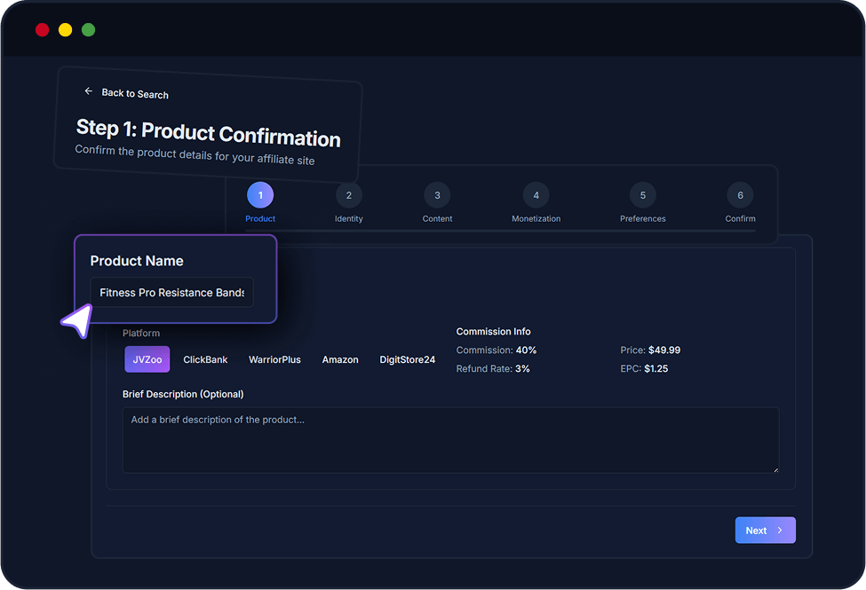 Create complete, professional affiliate websites with just a few clicks. Our advanced AI handles everything from design to content creation, building fully-functional mini-sites that look like they took weeks to develop—all in under 60 seconds.
