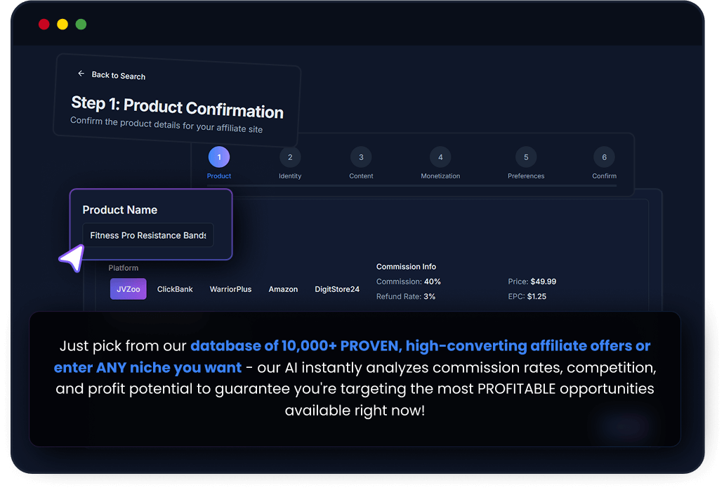 Eliminate the guesswork of finding profitable niches. Our AI analyzes current market demand, competition levels, and commission potential to recommend the most profitable affiliate opportunities right now—ensuring you never waste time in low-profit markets.