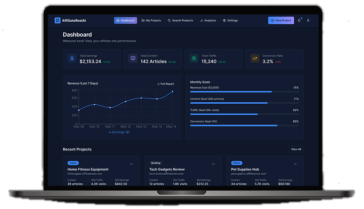 | Portfolio Site Management | Manage, track, and scale multiple niche affiliate sites from a central dashboard |